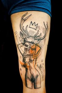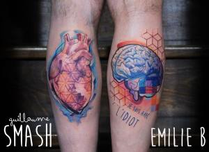 L’association des styles pop-art aquarelle d’Emilie B et de Guillaume Smash rendent ces tatouages uniques en couleurs et textures, une belle harmonie !