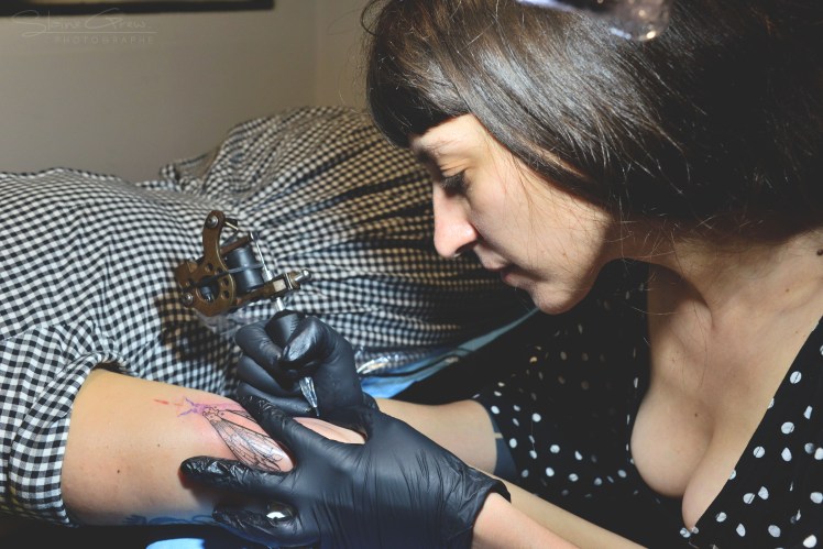 » Nous sommes passés en boutique privée depuis 1 an, nous ne recevons plus que sur rdv. Je suis en auto-entrepreneur, je trouve cela assez simplifié, c’est ce qui me convient. Cela dit, qu’il n’y ait pas de malentendu tout de même : je suis pour le statut d’artiste pour les tatoueurs ! » A.