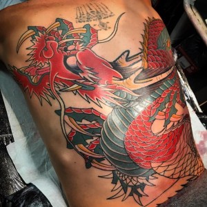 Le dragon est l’un des motifs principaux du tatouage oriental et l’on peut reconnaître sa provenance par certains de ses détails corporels. Par exemple, le nombre de griffes est déterminant : 3 au Japon, 4 en Corée, en Chine ou en Indonésie. De même qu’un dragon asiatique n’a jamais d’ailes.