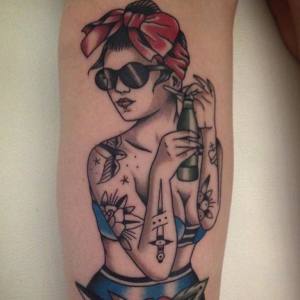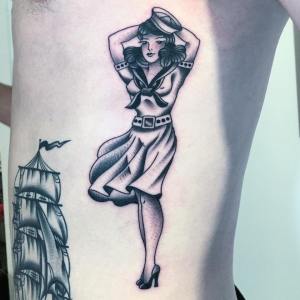 Rappelons le, une pin-up est une femme sexy à la pose suggestive dont on a envie d’accrocher la photo sur le mur. Et c’est bien entendu les marins qui ont diffusé ce motif de tatouage, pour leur tenir compagnie lors de leurs longues traversées. En effet, les femmes étaient interdites à bord, par superstition.